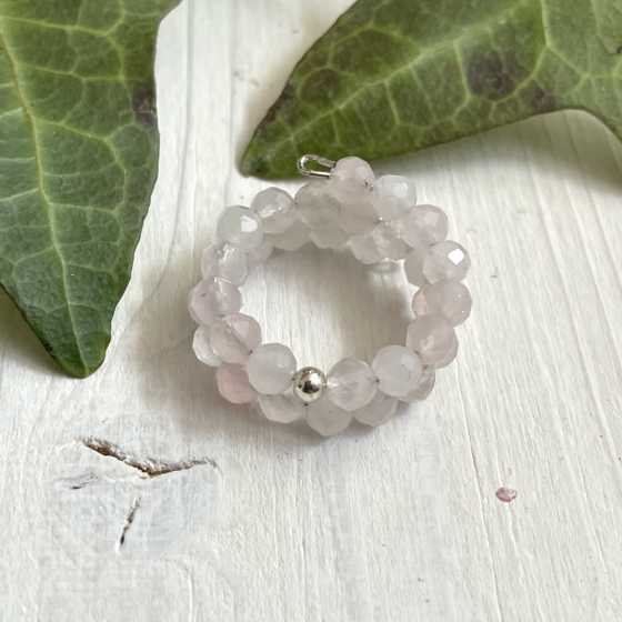Ring aus facettiertem Rosenquarz und Silber