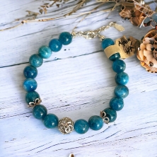 Handgefertigtes Armband aus Apatitperlen (8 mm) und Grundierungen aus 925er Silber.