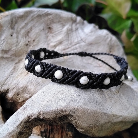 Howlite – Boho-Armband aus Mikro-Makramee - Frieden