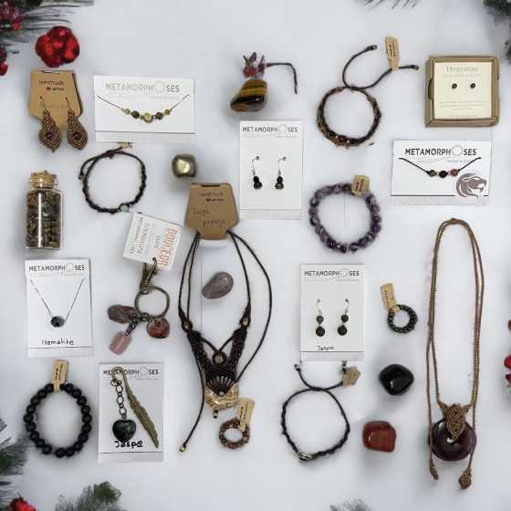 Entdecken Sie unsere exklusive Kollektion handgefertigter Schmuckstücke, die mit Leidenschaft in unserer Boutique entworfen wurden. Jedes einzelne Stück – sei es aus Natursteinen, Mikromakramee oder Modeschmuck – wurde mit grosser Sorgfalt und Geduld gefertigt. Einzigartige Geschenkideen zum Verschenken oder um sich selbst zu verwöhnen!