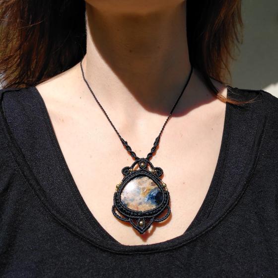 Unakite - Halskette mit Mikro-Makramee-Anhänger - Befreiung