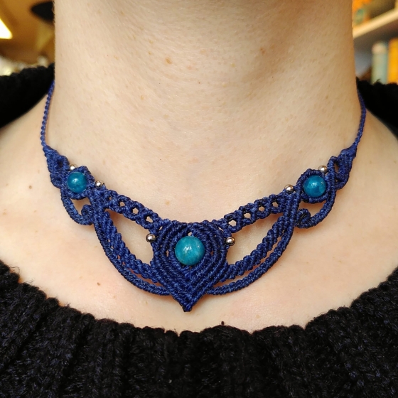 45,00 CHFHandgefertigte Halskette aus Mikromakramee mit Apatitstein.