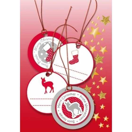 Set aus 4 runden roten Geschenkanhängern
