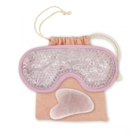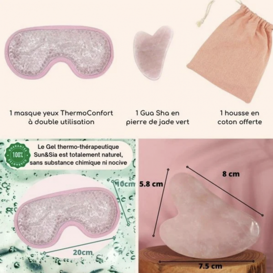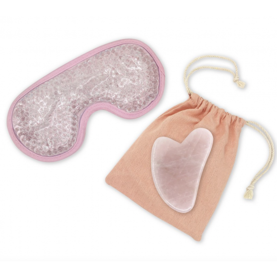Kit ThermoComfort Augenmaske und GuaSha Rosenquarz - Naturstein