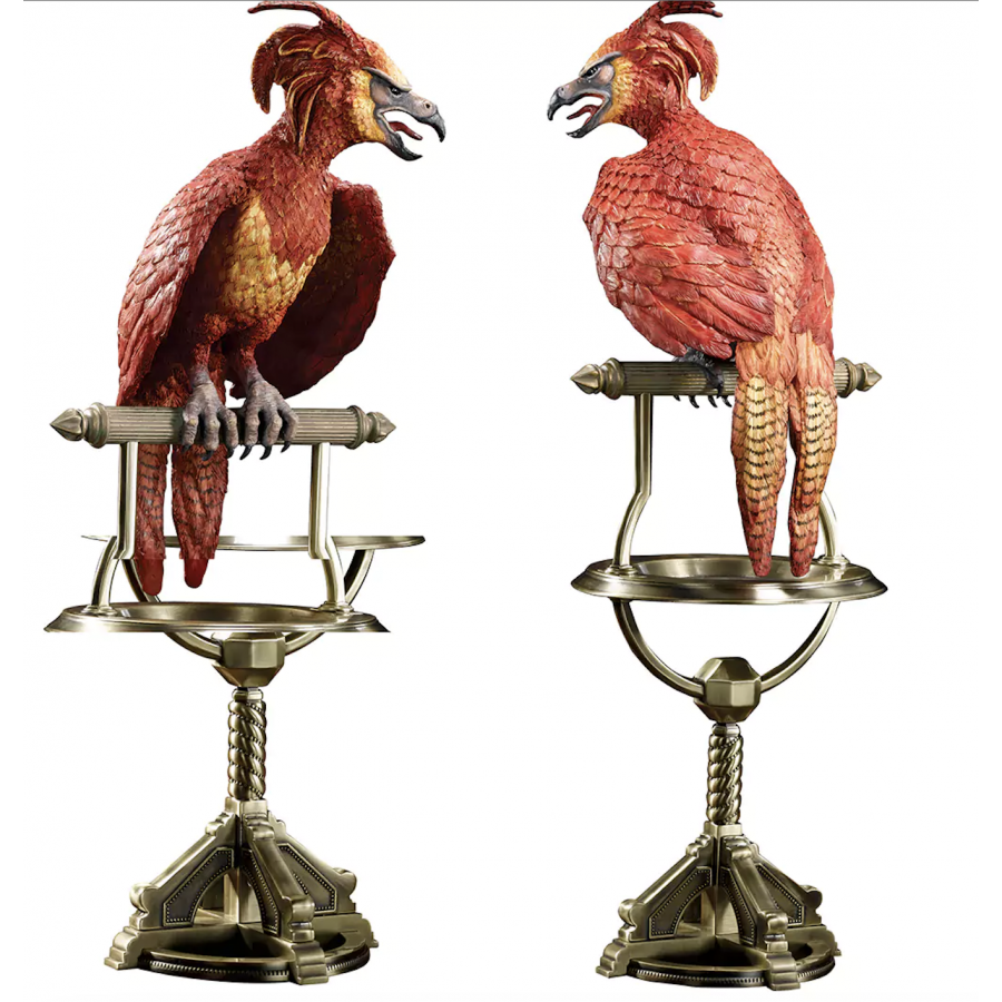 Diese Skulptur stellt Fawkes auf seiner Sitzstange dar, wie sie im Büro des Schulleiters von Hogwarts zu sehen ist. Der Vogel ist ca. 23 cm und das Ensemble ca. 38 cm gross.