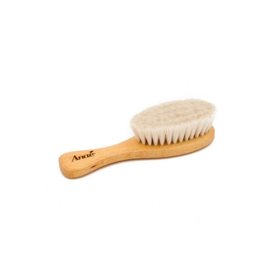 Verwenden Sie diese Bürste für die Haare oder das Gesicht des Babys. Leichter Massageeffekt. Bürste aus Buchenholz und Ziegenhaar. Länge 13cm.