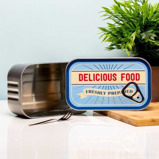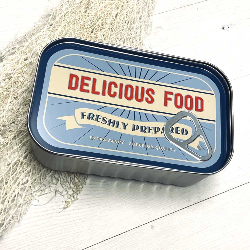 Die Dose mit dem Aufdruck Delicious Food misst 21 x 13 x 7 Zentimeter. Nicht spülmaschinenfest.