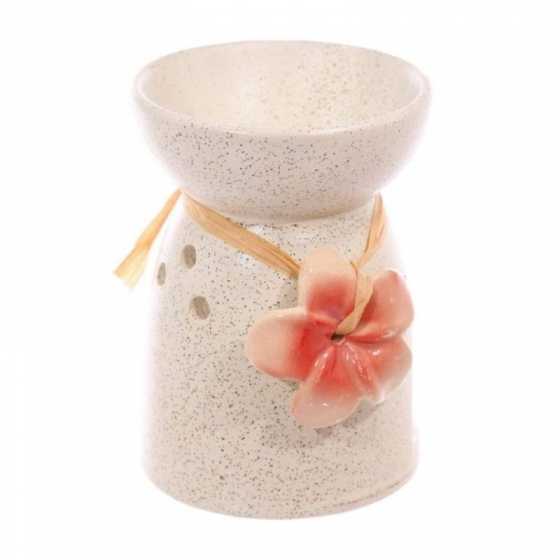 Brûleur à huile céramique moucheté - Crème avec fleurs - Orange