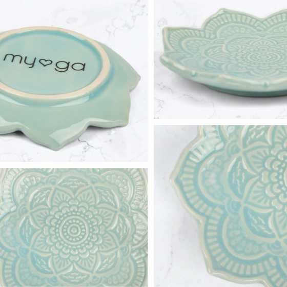 12,00 CHFL'attrayante assiette en céramique en forme de fleur de lotus avec le symbole Om au centre donne à votre maison une touche bohème.