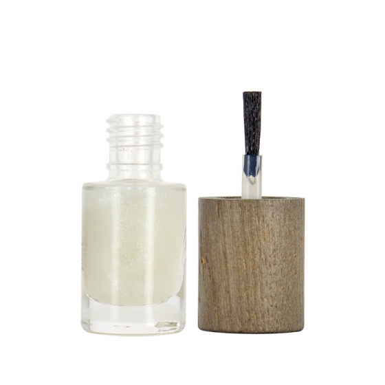 Le flacon du vernis à ongles est en verre et le bouchon est en bois labellisé PEFC, issu de forêts gérées durablement.