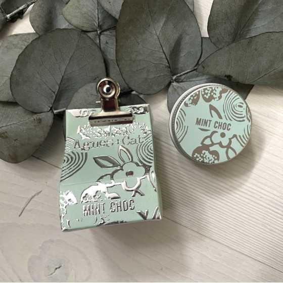 Le baume à lèvres naturel Agnes and Cat Mint Chocolate est un baume à lèvres nourrissant au parfum frais de menthe poivrée et de chocolat, parfait pour les mois secs d'hiver.
