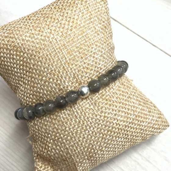 Bracelet assemblé à la main en labradorite de 6 mm. Perles et apprêts en argent 925.