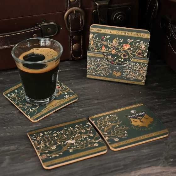Lot de 4 sous-verres inspiré de la tapiserie de la famille Black dans Harry Potter.